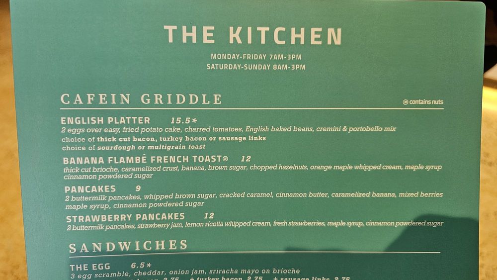 Cafein Centreville, located in Centreville, VA, offers a diverse menu featuring sandwiches, open toasts, breakfast items, and a variety of beverages. With a focus on providing a comfortable and welcoming environment, this cafe is known for its spacious seating options suitable for teleworking or group gatherings. Customers praise the friendly service and the delicious pastries, with standout dishes like the burrata and avocado toast receiving high praise. The drinks menu includes unique offerings like butterscotch latte and cream coffee, adding a special touch to the overall experience. Despite being a bustling location, Cafein Centreville maintains quick service and a welcoming atmosphere. With both indoor and outdoor seating available, it's a popular choice for visitors looking to enjoy a relaxing meal or coffee. Overall, Cafein Centreville impresses with its selection of dishes, beverages, and inviting ambiance.